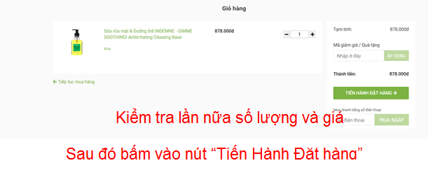 - Bấm vào nút “Tiến Hành Đặt hàng”