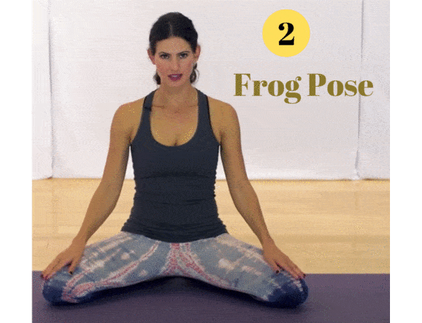 Bài tập kéo căng này thường được gọi là tư thế con ếch. Tư thế đã được hiển thị trong GIF bên dưới. Cố gắng giữ nguyên tư thế đó trong 2 đến 3 phút.