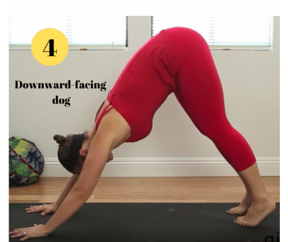 BÀI TẬP được gọi là Tư thế chó. Làm theo hướng dẫn như trong ảnh GIF và giữ nguyên tư thế đó trong 2 phút.